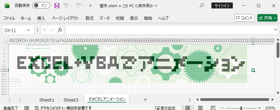 この実験は「セルに色を入れていく」、を基本にしていますが、他でも図形や画像部品を用いてアニメーションを作ることもできます。割と手軽なのでちょこちょこ作ったら紹介していきます。