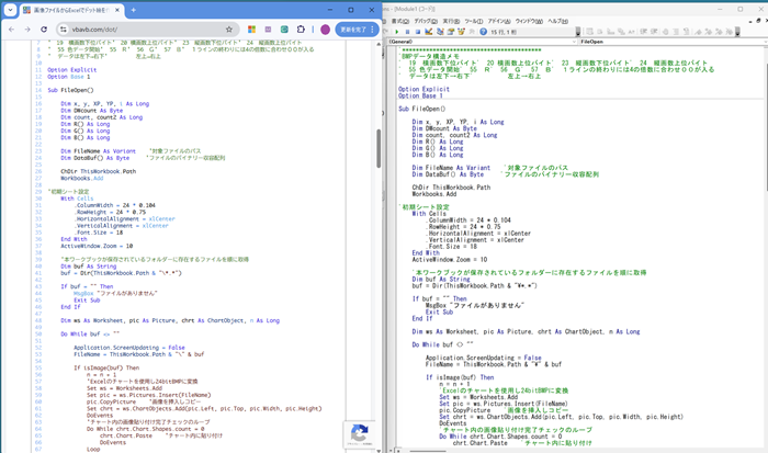 念のため、公開いただいているコードとマクロのコードをざっと比較してみます。同じですね!