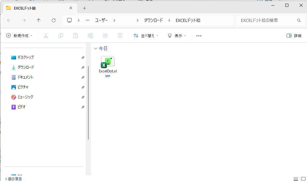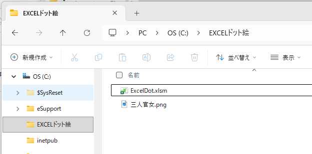これを先ほどのマクロファイルと同じフォルダに置いてみます。