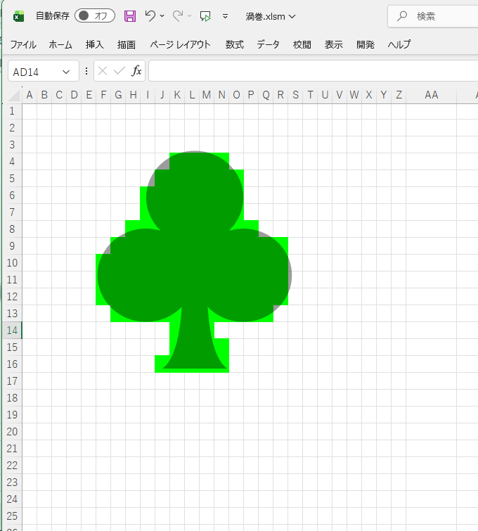 上画像は以前作りかけたものですが、図形をExcelセル画するのに、一旦貼り付けた後に自分でコツコツと色を付けていく、という方法をとりました。セルのサイズが大きいと、当然外の縁がカクカクと粗くなります。サイズを小さくするとやはり細かい処理が大変で、目がとても疲れます。