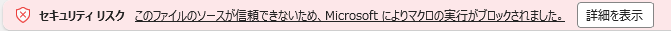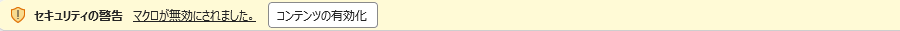 ファイルを開きます(ダブルクリック)。もし、セキュリティチェックでマクロが実行できない、というような警告がでた場合(下のようなメッセージ)は、