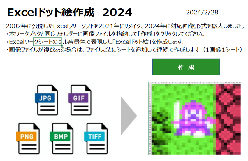 「Excel ドット絵作成 2024」の入手先と使い方