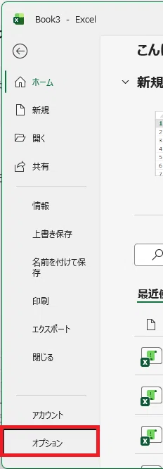 2.左下の [オプション] を選択します。