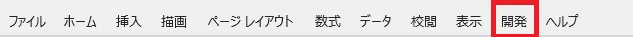 - Excelシート上で、[開発] タブをクリックします。