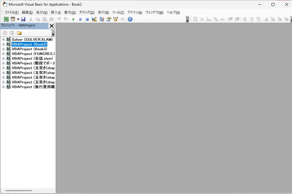 次に、プログラムを入力するための専用画面「 VBE (Visual Basic Editor)」を開きます。