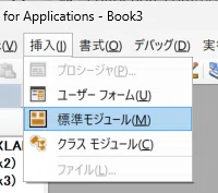 - VBE 画面の上部メニューから [挿入] をクリックします。