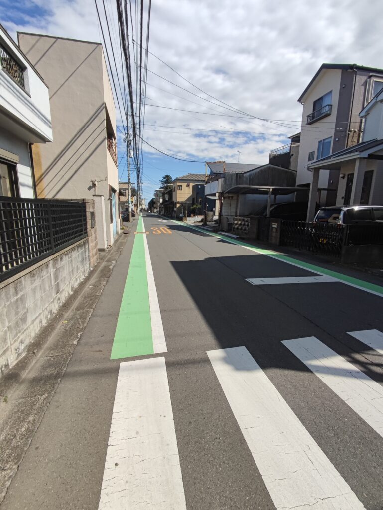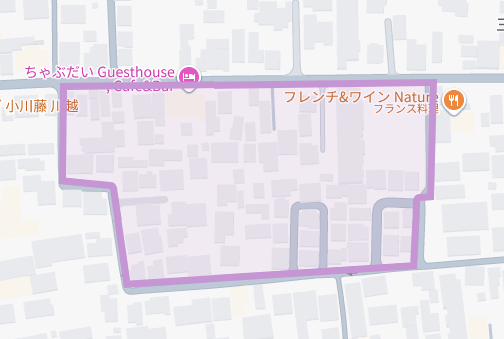 ズームするとこんな感じ。凸をさかさまにした形をしてます。一番長い道以外は道幅はせまいです。
