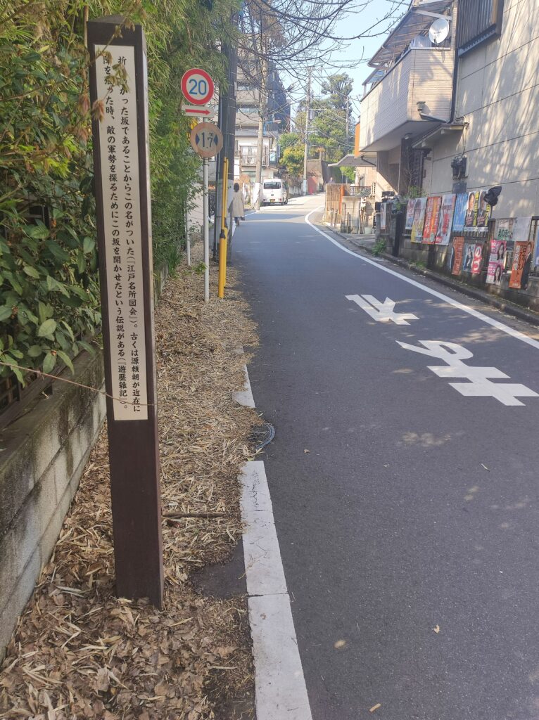 ②と③はあまり曲がり角、という感じはしません。が、新宿の七曲り坂に比べると、くねくねというよりは直角、という感じです。屋敷の区画に沿って道を作ったからなんでしょうね。起点も角の1つ、ととらえると七曲りどころか八曲がりといえるかもしれません。