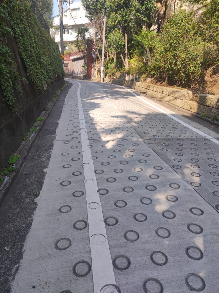 ちなみに、この場所の少し東寄りにある坂の上で合流する道の方が曲がり方や急斜面の点で七曲というのに相応しいかったです(自分感想)。この辺り、舗装やすべ止めがなかったら雨の日なら転げ落ちても不思議ではないほどの急斜面でした。